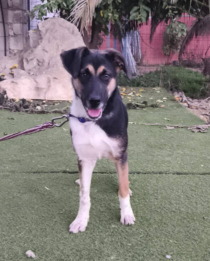 Die noch recht junge Hündin ist anhänglich und unterwürfig. Für ihr Alter zeigt sie sich sehr ruhig, vielleicht ändert sich das mit der Zeit oder in einem richtigen Zuhause. Sie versteht sich gut mit den anderen Hunden im Shelter. Somit dürfte sie auch in einen Haushalt vermittelt werden indem schon ein oder mehrere Hunde leben. Das Laufen an der Leine muss sie erst noch lernen, ebenso das Hunde-ABC. Ihre Betreuer sagen, dass sie schlau ist und mit den richtigen Menschen an ihrer Seite sicher schnell lernen wird. Im Auto fährt sie problemlos mit.