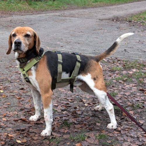 Gustav wäre gerne immer und überall dabei, er bleibt zwar mit den anderen Hunden auch schon mal kurzzeitig alleine im Zimmer, aber er hat ein sehr großes Bedürfnis auf menschliche Nähe – wie kann man es ihm verdenken. Dass in Gustav eine gehörige Portion Beagle drinsteckt, zeigt sich spätestens in seiner Leidenschaft gegenüber essbaren Dingen. Und so sollte man Essbares immer gut wegräumen, damit es nicht von Gustav’s Nase aufgespürt wird und ungehindert den Weg in seinen Bauch findet. Gerade in der Vorweihnachtszeit durchaus eine Herausforderung. Gustav liegt gerne mit auf der Couch und genießt die Kuscheleinheiten am Abend ganz besonders. Bei Aufregung, zum Beispiel, wenn das Pflegefrauchen kurz weg war oder sich ein Spaziergang „anbahnt“, bellt Gustav schon gerne mal, beruhigt sich dann aber auch schnell wieder.