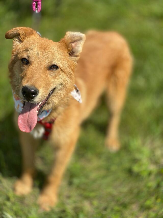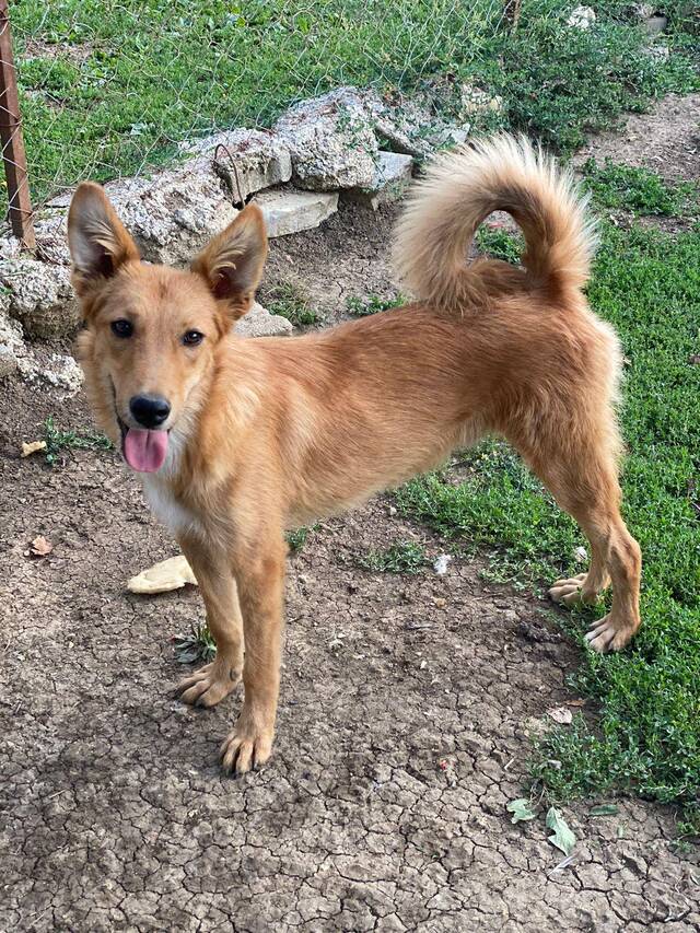 Karamell ist ein aufgeweckter junger Rüde, ca. 1 Jahr alt (geboren im November 2024) und 52cm hoch. Er versteht sich mit allen Hunden bestens, ist verspielt, immer gut gelaunt und sehr menschenbezogen. Karamell läuft gut an der Leine, ist vollständig geimpft, von Parasiten befreit und jetzt auch kastriert. Er hat wunderschöne Ohren, als stecke ein bisschen Collie in ihm. Vor seiner Ausreise wird er nochmals auf alle Krankheiten und Parasiten getestet.