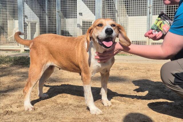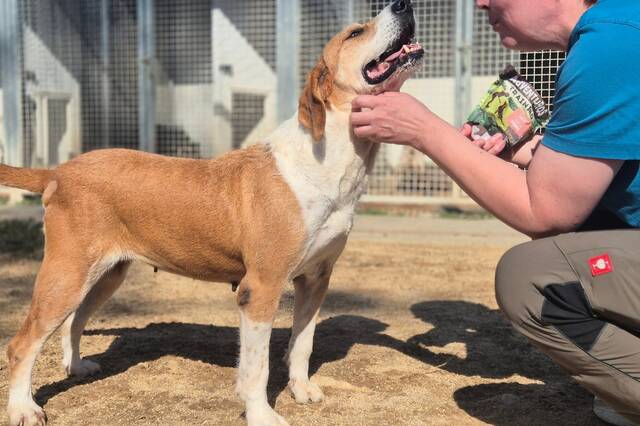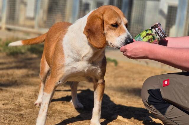 Name: Deneris Geboren: ca. 01.01.2022 Rasse: Beagle-Segugio-Mischling Geschlecht: weiblich Schulterhöhe: ca. 47 cm Gewicht: - Kastriert: ja Geimpft: ja Gechippt: ja Farbe: braun-weiß Mittelmeerkrankheiten: Leishmaniose positiv – in Behandlung, Rest folgt nach Einreise Krankheiten: siehe Mittelmeerkrankheiten Katzenverträglich: unbekannt Hundeverträglich: ja Kinder: unbekannt Handicap: nein Aufenthalt: Canile Comunale Tortoli, Sardinien