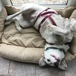Frank bleibt ohne Probleme mehrere Stunden mit der Ersthündin allein, ganz allein zu bleiben übt er gerade. Frank steigt noch nicht gerne ins Auto ein, aber das Fahren macht ihm keine Probleme. Die Pflegefamilie hat nun eine Box für das Auto besorgt, die Frank im Haus schon sehr gut annimmt und hoffentlich bald auch gerne im Auto annimmt.