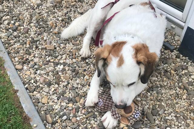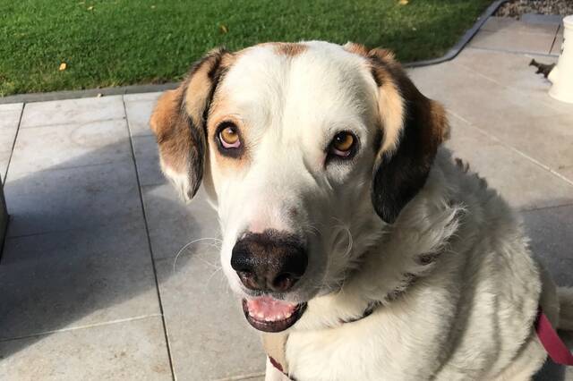 Frank ist ein Maremmano-Schäferhund-Mischling von etwas niedrigerer Schulterhöhe und derzeit noch mit ein paar Kilo zu viel auf den Rippen. Er darf mit seiner Pflegefamilie aber sehr viel Gassi gehen und hat schon ein paar Pfund verloren. In seinem neuen Zuhause sollte daher auf sein Gewicht geachtet werden.