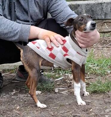 Zelè ist eine sehr süsse und liebe kleine Hündin. In Ungarn ist es kalt und die Hunde leben in den Zwingern draussen. Da sie keine Unterwolle haben hat man ihnen ein Mäntelchen angezogen. Sie sind sehr menschenfreundlich und lassen sich gerne auf den Arm nehmen. Auch an der Leine laufen sie schön. Gerne können Sie zu einem weiteren verträglichen Hund vermittelt werden.