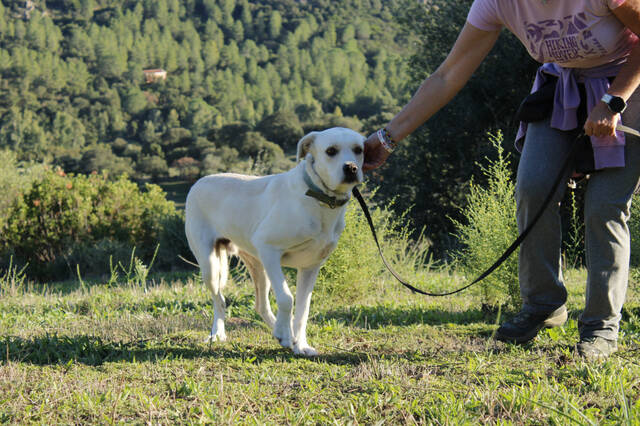 Er hat ein richtiges Dach über dem Kopf, hat aber täglich Zugang zu einem kleinen Freilaufbereich, in dem er sich bewegen, schnüffeln und vorsichtig Kontakt zu anderen Hunden aufnehmen kann. Die Pension bietet Spaziergänge, kleine Trainingseinheiten und ein weitläufiges Gelände, das ihm Stück für Stück Halt gibt.