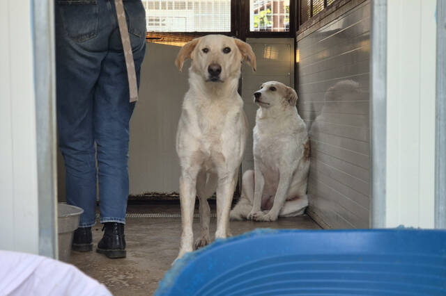 Die Box ist eng, laut, stickig – und Auslauf gibt es praktisch keinen. Sie können das Leben draußen nur durch Gitter wahrnehmen. Für zwei große, sensible Hunde ist das ein Zustand, der kaum auszuhalten ist.