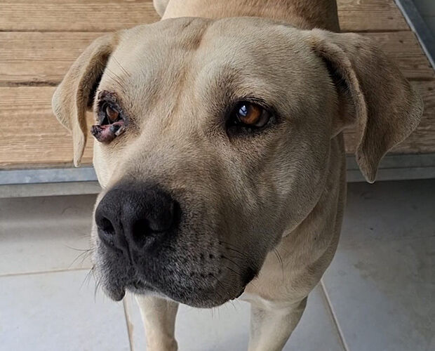 Der Wendepunkt Im Mai 2025 kam er zu unserer Kastrationsaktion. Doch wir sahen sofort mehr als nur einen Straßenhund: Sein rechtes Auge bereitete ihm Qualen. Ein Geschwulst sorgte dafür, dass sich jeder Wimpernschlag anfühlte, als hätte er Splitter im Auge. Er muss unfassbare Schmerzen gehabt haben, und doch blieb er immer sanft.