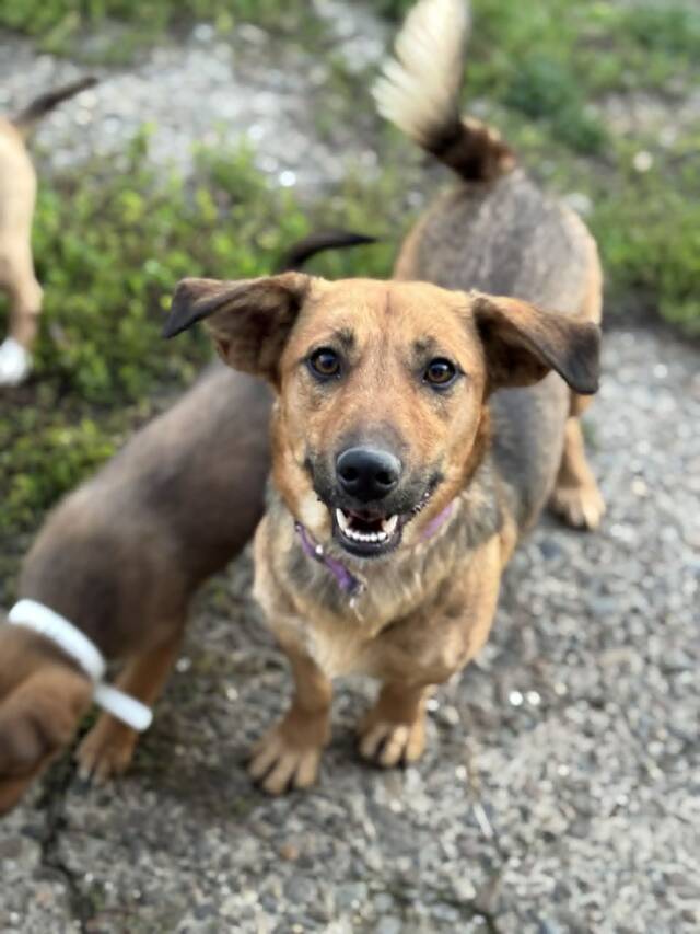 Hündin, geb. ca. 2023, ca. 35–40 cm, ca. 10 kg, kastriert, geimpft, gechipt, EU-Heimtierpass, vor Ausreise Test auf Babesiose, Borreliose, Ehrlichiose, Anaplasmose, Dirofilarien und Leishmaniose