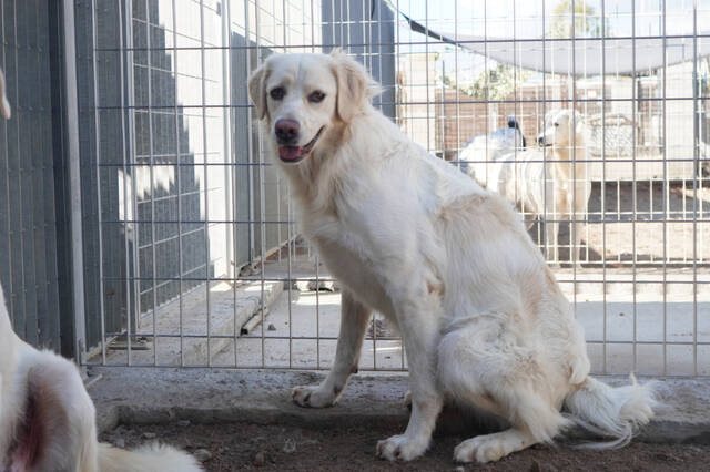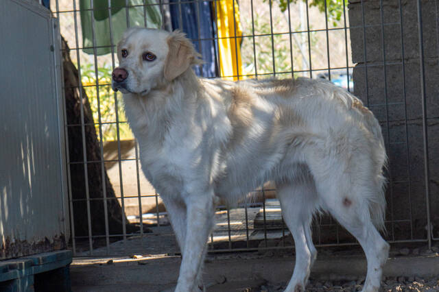 Name: Tosca Geboren: ca. 01.03.2023 Rasse: Maremmano-Mischling Geschlecht: weiblich Schulterhöhe: ca. 60 cm Gewicht: - Kastriert: ja Geimpft: ja Gechippt: ja Farbe: weiß-beige Mittelmeercheck: folgt nach Einreise Krankheiten: keine bekannt Katzenverträglich: unbekannt Hundeverträglich: ja Kinder: unbekannt Handicap: nein Aufenthalt: L.I.D.A. Olbia, Sardinien