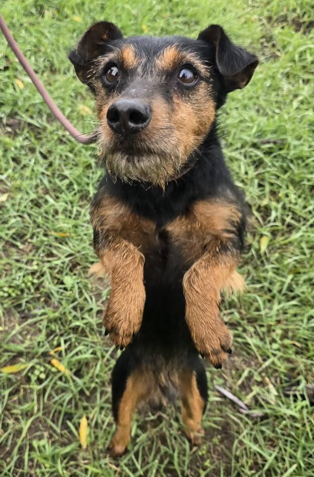 Reggie ist wohl ein Terrier Mischling, zeigt aber derzeit nicht das typische, manchmal temperamentvolle Terrier Verhalten. Ob sich das mit der Zeit oder im neuen Zuhause ändern wird, können wir natürlich nicht sicher sagen – aber wir hoffen sehr, dass er so freundlich und ausgeglichen bleibt, wie ihn die Mitarbeiter gerade beschreiben.