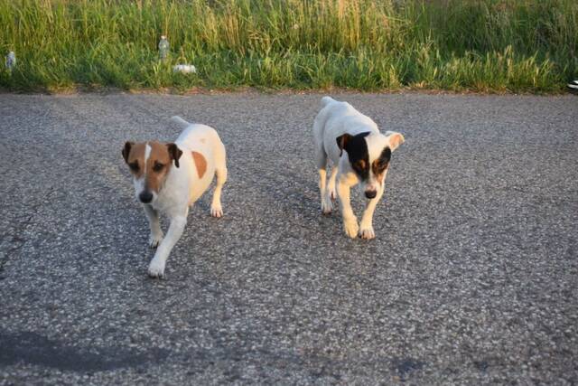 Judy und Jolly liefen außerhalb von Orosháza auf einer Nebenstraße herrenlos umher. Passanten baten das Tierheim um Hilfe und so kamen sie ins Tierheim.
