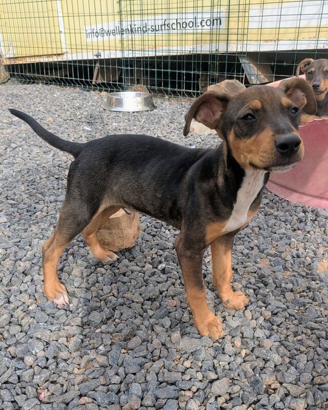 Fiete tauchte gemeinsam mit seinem Bruder Fred im Alter von nur etwa sechs Wochen völlig allein auf der Pinke eines älteren Ehepaars auf. Die beiden waren winzig, hilflos und suchten dringend Nähe und Sicherheit. Da das Ehepaar bereits fünf Hunde hatte, durften die Welpen zu unserer Tierschutzkollegin Darinka auf die Finca Zoe ziehen – und Fiete hat dort seitdem mit seiner liebevollen Art alle Herzen im Sturm erobert.
