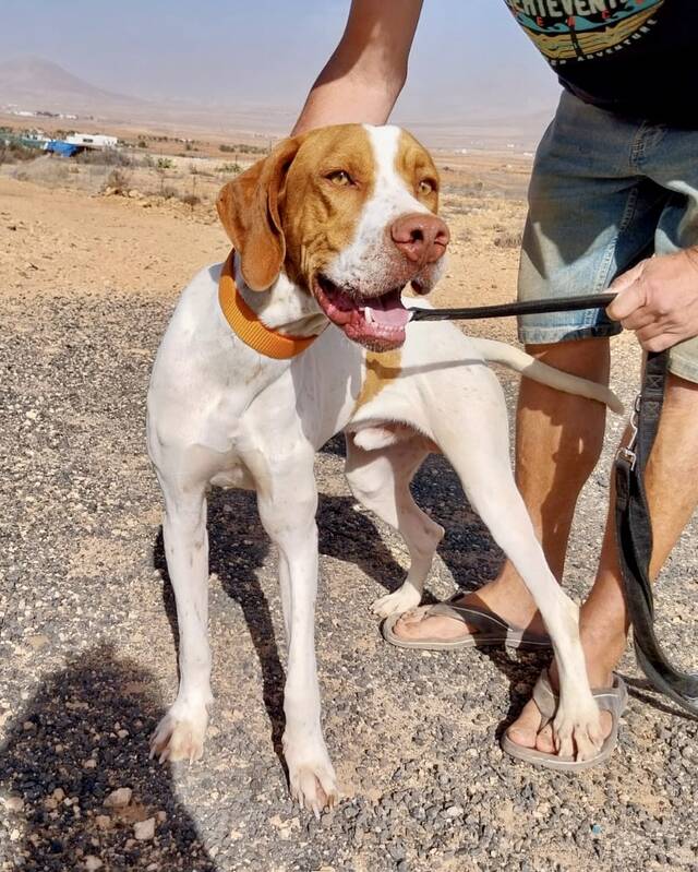 Dexter konnten unsere Tierschutzkollegen Sarah und Sven aus der Perrera im Süden übernehmen, wo er diese trotz des Stresses und Elends um ihn herum überschwänglich und freundlich begrüßte. Im relativ guten Allgemeinzustand, jedoch mit dem Vorderbein stark hinkend, stand natürlich sofort fest, dass dieser liebe Schatz direkt mit auf die Finca durfte.