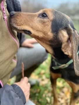 Als wir Marco im Oktober 2025 kennenlernten, verzauberte er uns sofort mit seinem lieben, sanften Wesen. Es ist nicht anders zu sagen: Marco ist ein großer Schatz! Er liebt Menschen, kroch richtig in uns hinein und konnte gar nicht genug von streichelnden Händen bekommen. Er ist ein noch junger Hund, der noch fast sein ganzes Leben vor sich hat. Und dieses Leben soll für ihn toll werden. Ein schönes Zuhause bei lieben Menschen – das wünschen wir uns so sehr für den kleinen Helden, der dem Tod regelrecht von der Schippe gesprungen ist.