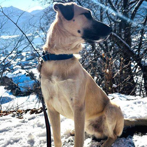 Geboren: 13.06.2023 Geschlecht: männlich Rasse: Maremmano-Kelpie-Mischling Schulterhöhe: ca. 62 cm Kastriert: nein Geimpft: ja Gechippt: ja Mittelmeercheck: Hepatozoonose positiv Krankheiten: keine bekannt Katzenverträglich: denkbar Hundeverträglich: Hündinnen ja, Rüden bedingt Kinder: denkbar Handicap: nein Aufenthaltsort: 83727 Schliersee, Bayern auf Pflegestelle seit: 27.09.2025