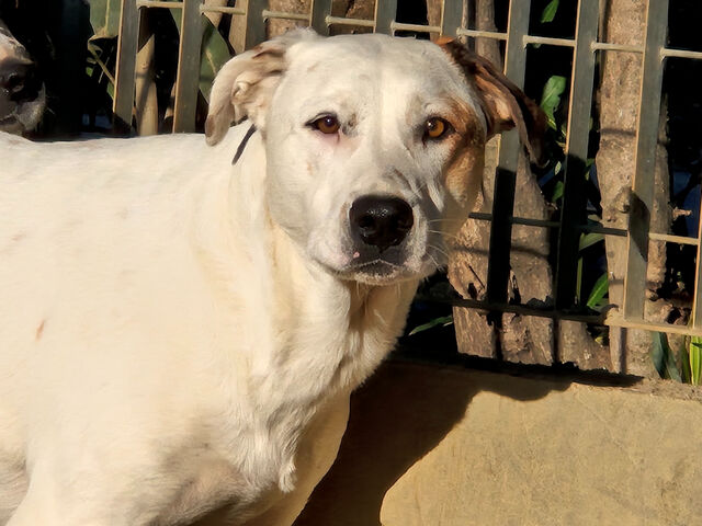 Name: Pixar Geboren: ca. 01.10.2023 Rasse: Mischling Geschlecht: weiblich Schulterhöhe: ca. 60 cm Gewicht: --- Kastriert: ja Geimpft: ja Gechippt: ja Farbe: weiß mit braun Mittelmeercheck: Test folgt nach Einreise Krankheiten: keine bekannt Katzenverträglich: unbekannt Hundeverträglich: ja Kinder: unbekannt Handicap: nein Aufenthalt: L.I.D.A. Olbia, Sardinien