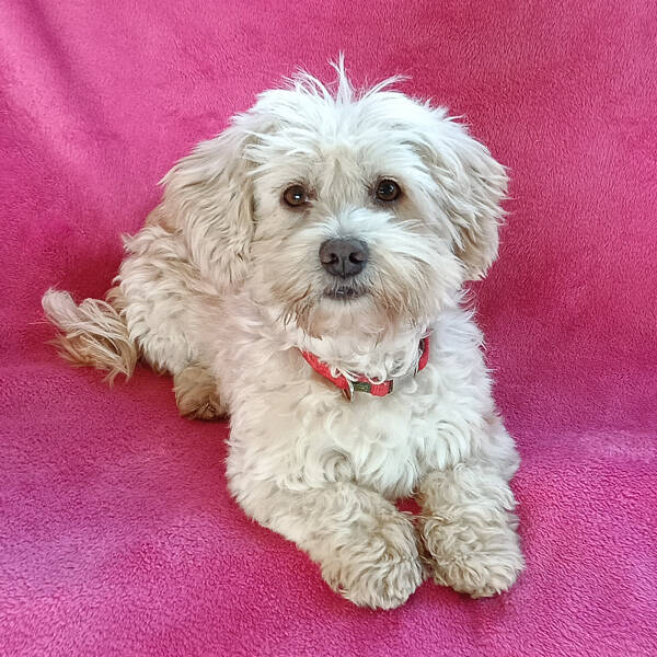 Rasse: Malteser-Pudel Mix Alter: ca.8 Jahre alt Geschlecht: männlich Farbe: weiß/beige Schulterhöhe: 34 cm Schnauze bis Schwanzansatz: 48 cm Brustumfang: 49 cm Halsweite: 30 cm Gewicht: 8 kg Kastriert: Ja Chip: ja Geimpft und entwurmt: ja Charakter: sehr lieb, ruhig, sozial, leinenführig, bewegungsfreudig, verschmust