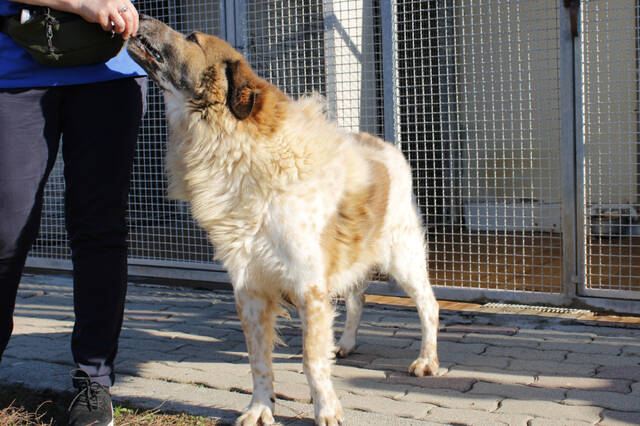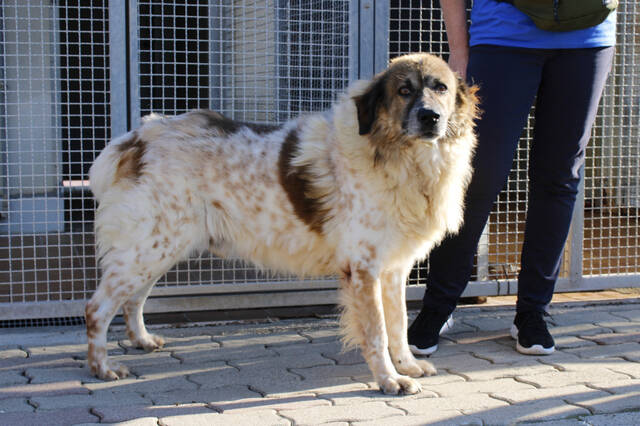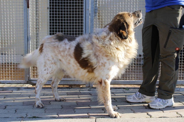 Wie bin ich? Mago ist ein imposanter Hund, vermutlich ein Bernhardiner–Maremmano-Mischling. Sein weiches, langes Fell in Rotbraun und Weiß sowie seine Größe machen ihn zu einem echten Hingucker. Charakterlich ist er freundlich und menschenbezogen, gleichzeitig weiß er genau, was er will. Er zeigt selbstbewusstes Verhalten, kann aber auch verspielt auf Menschen zugehen, sobald sich die Gelegenheit für Streicheleinheiten bietet. Mit seinen Artgenossen ist er meist neutral, gelegentlich versucht er, imponierend aufzutreten, besonders bei Hunden, die ihm ebenbürtig erscheinen. Mago braucht daher eine starke, konsequente, aber einfühlsame Hand. Klare Kommunikation und souveränes Auftreten sind entscheidend, damit er sich nicht als „Familienoberhaupt“ fühlt. Aufgrund seiner Größe, Kraft und Persönlichkeit suchen wir ausschließlich hundeerfahrene Menschen für Mago – Menschen, die wissen, wie man große, selbstbewusste Hunde führt, und die ihm Sicherheit und liebevolle Führung bieten können.