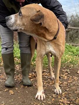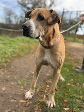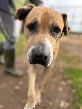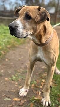 Nicolas ist ein sanfter Riese mit seinen ca. 70 cm Schulterhöhe. Er hatte vermutlich eine Dogge unter seinen Vorfahren. Nicolas ist einfach nur lieb. Er freut sich über streichelnde Hände und möchte dabei sein Er ist ein bescheidener und recht ruhiger Hund – ganz so wie die Großen oft sind – in der Ruhe liegt die Kraft!