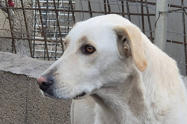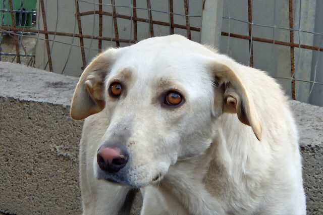 Olias ist eine eher zurückhaltende, scheue Hündin – eine zarte, feine Seele. Vermutlich steckt ein Labrador-Mix in ihr, was man an ihrer sanften Ausstrahlung und ihrem freundlichen Wesen erahnen kann. Sie macht sich lieber „unsichtbar“, beobachtet aus der Distanz und zieht sich zurück, wenn ihr etwas unheimlich wird.