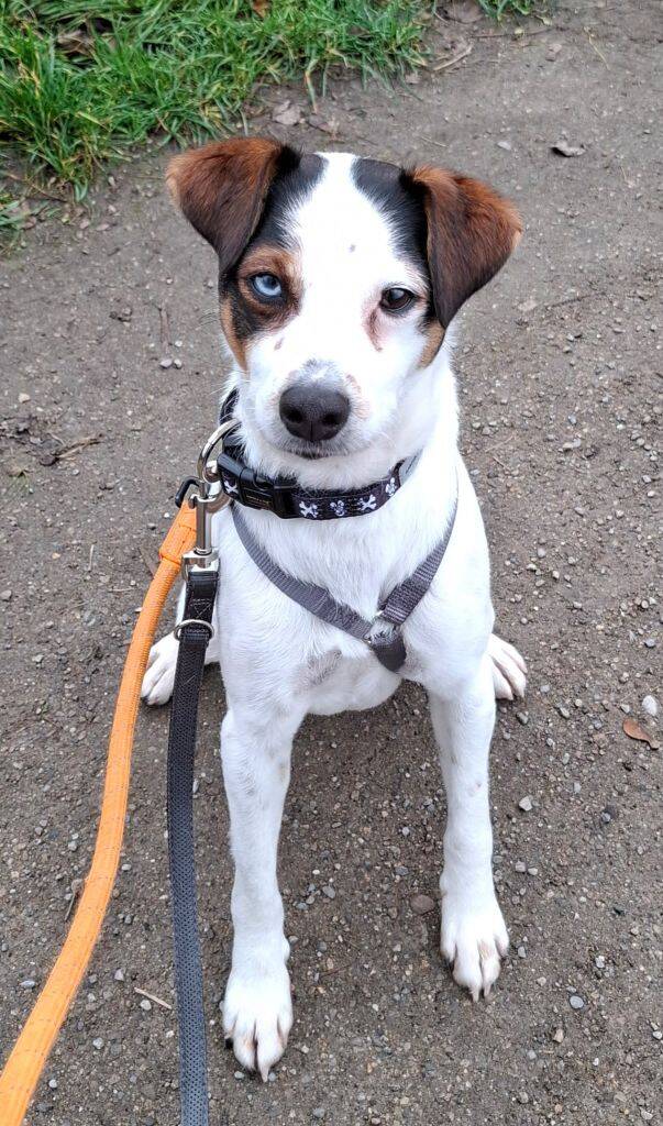 Beschreibung: Ramdon ist ein junger Bodeguero-Mix-Rüde mit einem ganz besonderen Blick: Ein Auge ist blau, das andere braun und spiegelt perfekt seinen sanften Charakter wider.