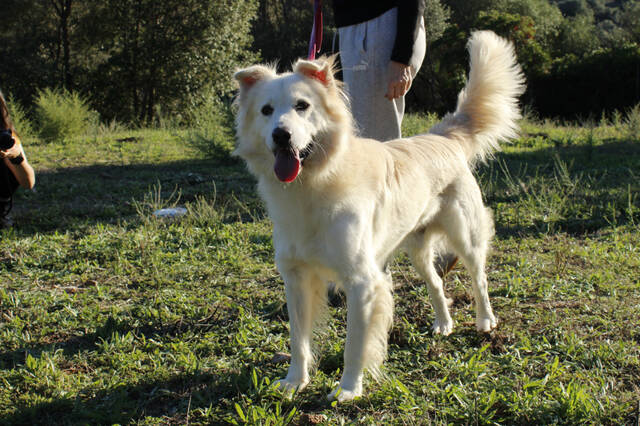 Was ist mir passiert? Poseidone, ein Maremmano- mit vermutlich Schäferhund-Anteil, wurde im Juni 2019 geboren. Seine Geschichte begann hinter einem Schloss in Posada, wo er zusammen mit seiner Schwester mutterlos aufgefunden wurde. Während seine Schwester schnell ein Zuhause fand, musste Poseidone einen langen, steinigen Weg gehen. Zunächst lebte er bei einer Volontärin, gemeinsam mit Kindern und Katzen, doch als er wuchs, reichte der Platz nicht mehr aus. Schließlich landete er in einem provisorischen Gehege bei einer sardischen Tierschützerin im Hinterland – abgeschottet von der Welt, mit nur einer Hündin als Gesellschaft. Die Unterkünfte bestanden aus alten Lattenrosten und umgestürzten Kühltruhen, medizinische Versorgung war spärlich, Parasiten unbehandelt. Anfang November 2024 durfte Poseidone endlich in die Pension von Patrizia umziehen – ein Wendepunkt in seinem Leben.