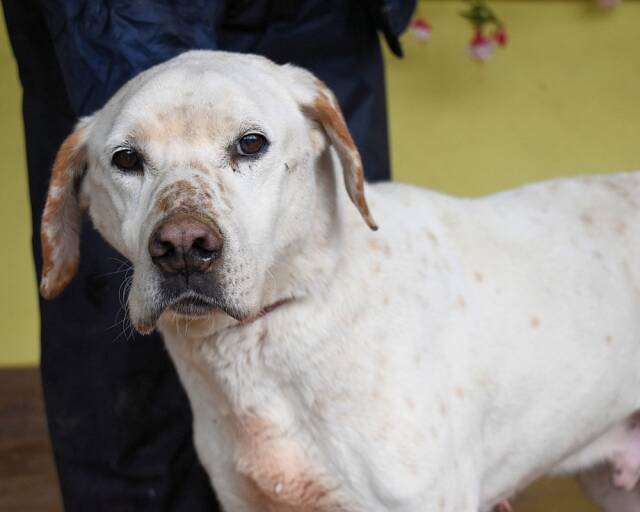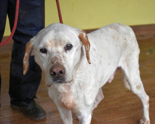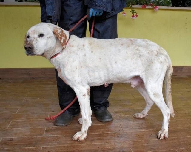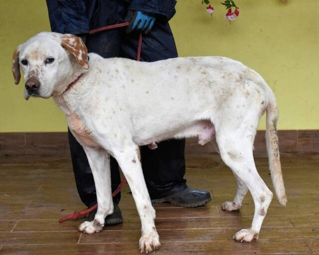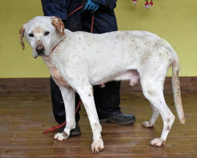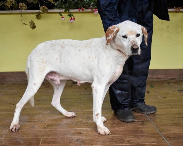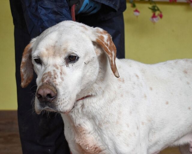Und während all das drohend über ihm hängt, sitzt Ginko da – und Ginko wirkt nicht gesund. Er ist sehr dünn, sein Körper erzählt von Entbehrung. Er bewegt sich, als tue ihm vieles weh, und die hängenden Papillome, die seinen Körper bedecken, wirken wie stumme Zeugnisse eines Lebens, das niemand wirklich betreut hat. Ginko: Ein Hund, der menschliche Nähe sucht, der sich vorsichtig anlehnt, nicht aus Bedürftigkeit, sondern aus Hoffnung. Ein Hund, der freundlich mit Rüden und Hündinnen zusammenlebt und der an der Leine läuft, als wolle er sagen: „Ich gebe mir Mühe. Ich will doch nur gesehen werden.“ Ein Hund mit einem Blick, der leiser schreit als jedes Jaulen. Es gibt Hunde, denen sieht man das Leiden an. Und es gibt Hunde wie Ginko – deren stilles Zerbrechen schwerer zu ertragen ist als jeder laute Schmerz.
