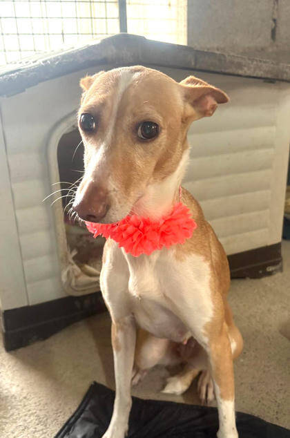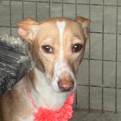 Die sanftmütige Podenca war anfangs noch etwas scheu, doch sie macht deutlich Fortschritte und mittlerweile zeigt sich Laika14 ihren Betreuern verschmust gegenüber. Sie sucht selbst engen Körperkontakt zu ihren Bezugspersonen und genießt es sich von ihnen streicheln zu lassen. Mit anderen Hunden ist Laika14 verträglich, aber bei fremden Hunden erstmal zurückhaltend. Die meiste Zeit verbringt sie mit Chico, der am gleichen Tag ins Shelter kam. Ein freundlicher und souveräner Hundefreund in ihrem Zuhause könnte ihr bestimmt bei der Eingewöhnung helfen. Das Hundeeinmaleins wird der kleinen Podenca noch fremd sein.