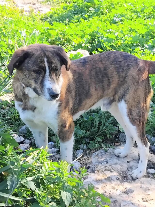Tito wurde im Alter von ca. 5 Monaten ausgesetzt und schwer geschwächt am Ufer eines Flusses in den Bergen gefunden. Er war stark unterernährt und dehydriert und musste einen Monat tierärztlich versorgt werden. Nach seiner Genesung kam er in unsere Obhut und hat sich zu einem fröhlichen, stabilen und liebevollen Hund entwickelt.