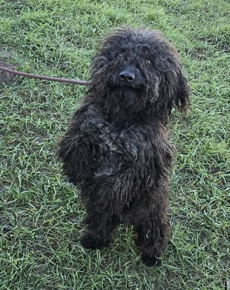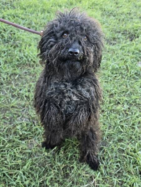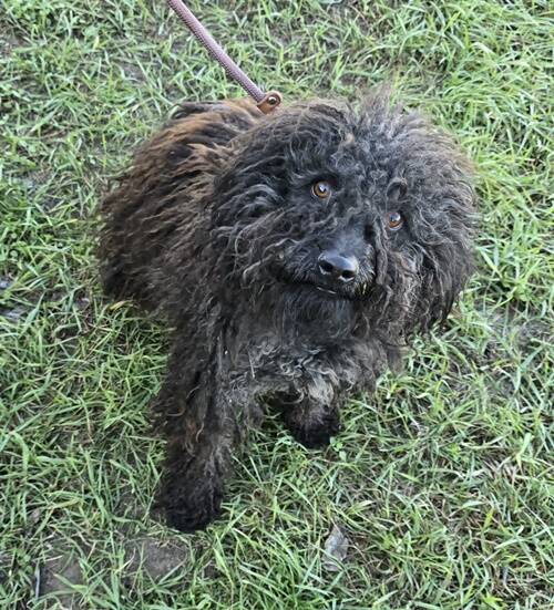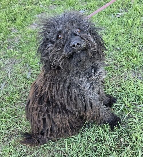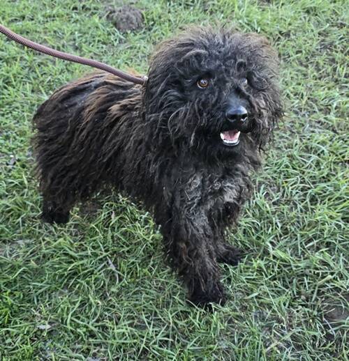 Beschreibung: Emir, der junge Pulimischling ist in der Nähe einer Fabrik in einem Vorort umhergelaufen. Arbeiter informierten die Tierheimmitarbeiter, die versuchten ihn zu fangen.