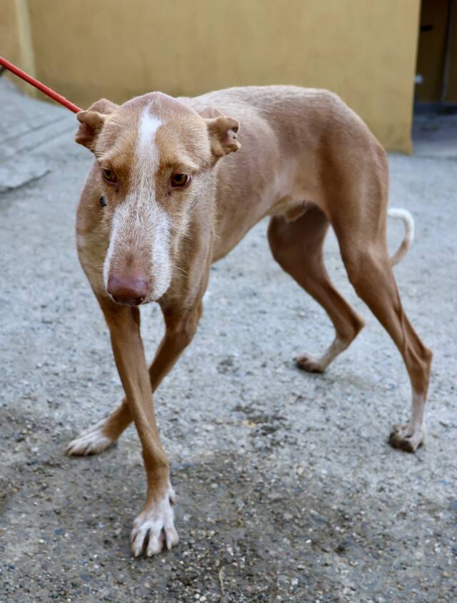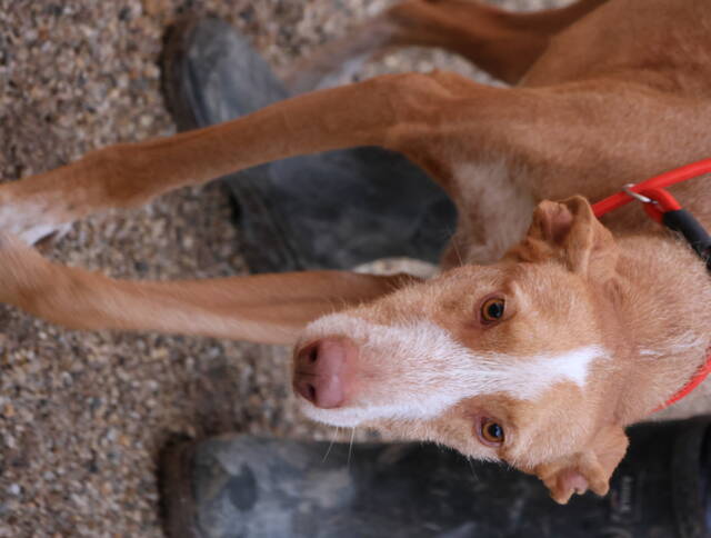 Noa (4580) Podenco Andaluz - Mix Rüde, geb. am 08.12.2023, hat eine Schulterhöhe von 70 cm und wiegt 28 kg.