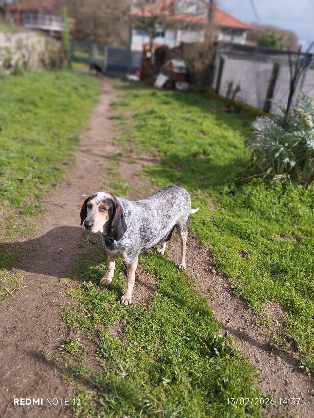 Bala`s Alter wird auf 8-9 Jahre geschätzt und sie ist ca. 55 cm groß. Sie ist eine wunderbare, sehr freundliche, liebe und sanfte Hündin, die zu Menschen sehr lieb ist, sehr gut mit anderen Hunden verträglich ist und sich auch sehr gut mit Katzen versteht. Ein besseres Sozialverhalten als das, was Bala zeigt, ist kaum vorstellbar. Sie hat so viele traurige Jahre im Zwinger des Jägers leben müssen, bekam immer wieder Welpen und nun, schon fast als Hundeseniorin, durfte sie den Zwinger, Dank Sonias und Carmens Einsatz, endlich verlassen. Natürlich kann Bala rassebedingt einen Jagdtrieb zeigen, auch wenn in Spanien davon rein gar nichts zu merken ist. Der Griffon bleu benötigt regelmäßig Auslauf in der freien Natur. Er ist glücklich, wenn er schnüffeln und zusammen mit seinen Menschen die Natur erkunden kann. Er kann auch mal ein "Sturkopf" sein, d. h. eine konsequente Erziehung ist wichtig. Der Griffon bleu ist kein Begleithund für die Stadt und kein Wohnungshund. Es sind sehr gelehrige, fröhliche, anhängliche und menschenbezogene Hunde, die bei der richtigen Haltung mit entsprechend Auslauf ruhig und ausgeglichen sind. Der Griffon bleu eignet sich sehr gut als Familienhund, ist sehr sozial und verträglich.