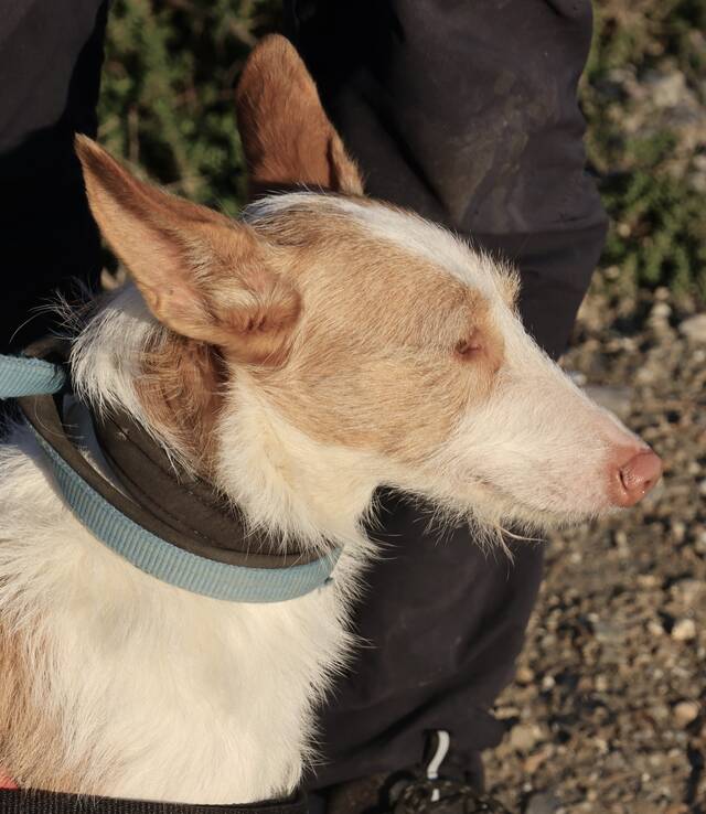 Happy (4603) Podenco Andaluz - Mix; rauhaarig Hündin, geb. am 14.08.2023, hat eine Schulterhöhe von 42 cm und wiegt 11 kg.