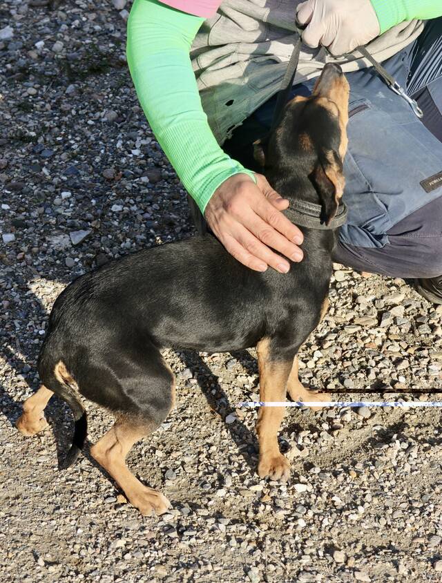 Rasel (4599) Mix Hündin, geb. am 15.08.2024, hat eine Schulterhöhe von 30 cm und wiegt 7 kg.