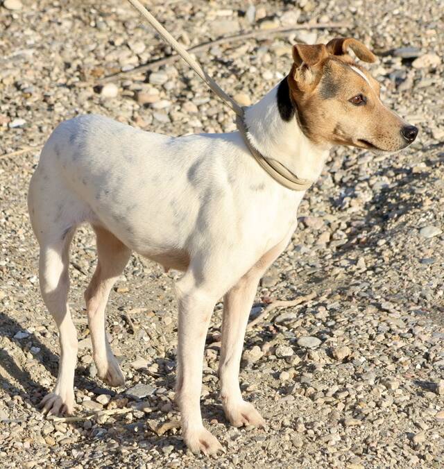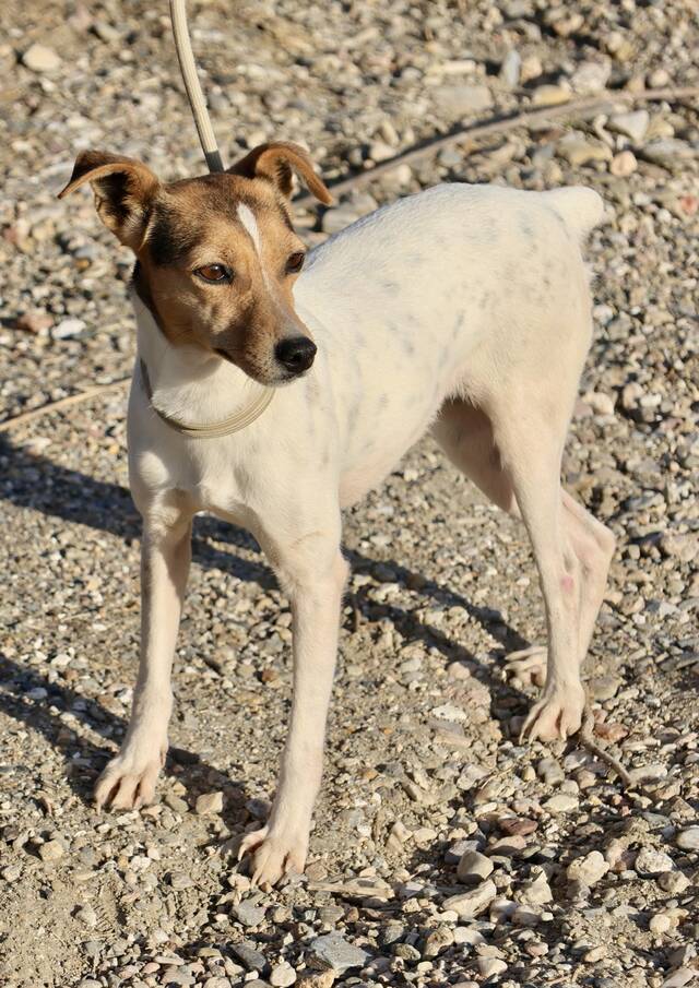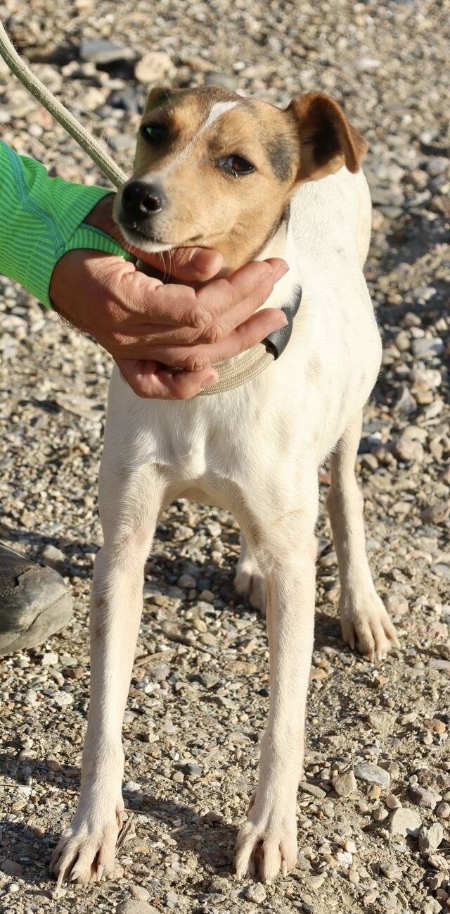 Lara (4598) Bodeguero Andaluz - Mix Hündin, geb. am 10.01.2024, hat eine Schulterhöhe von 35 cm und wiegt 5 kg.