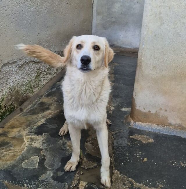 Vagnilia ist offen und freundlich und etwa 1 1/2 Jahre alt (Stand Januar 2026). Bei den Geschwistern handelt es sich um Maremmanomixe, also Herdenschutzhundmixe.