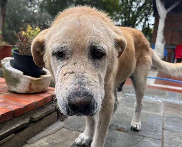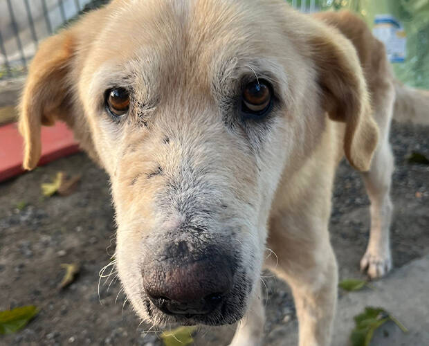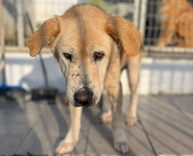 Hans wird auf ca. 12-15 Jahre geschätzt. Bei einer Größe von62 cm wiegt er 33 kg.
