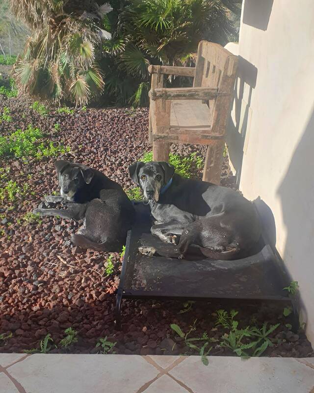 Endlich auf der Finca Esquinzo angekommen, zog Thor zu Luna in ein großzügiges Gehege, wo er sich sehr wohl fühlt. Endlich kann er große Runden laufen und hat eine Aufgabe (obwohl, als Wachhund beeindruckt er nur mit seiner Größe, dass er jeden Eindringling mit wedelndem Schwanz begrüßt, erzählen wir nur hinter „vorgehaltener Hand“).