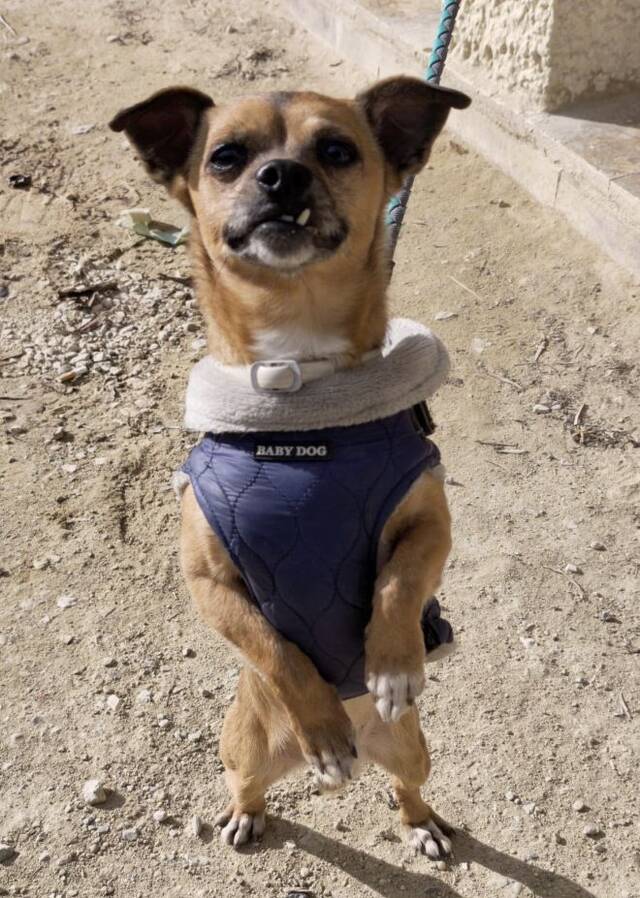 Beschreibung: Chouvi kam gemeinsam mit Julián ins spanische Tierheim, nachdem ihr Besitzer leider verstorben ist. Für ihn brach damit seine vertraute Welt plötzlich weg. Nun wartet Chouvi darauf, wieder ein liebevolles Zuhause zu finden, in dem er ankommen und neu durchstarten darf.