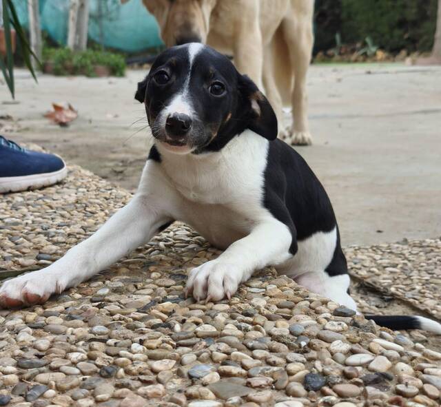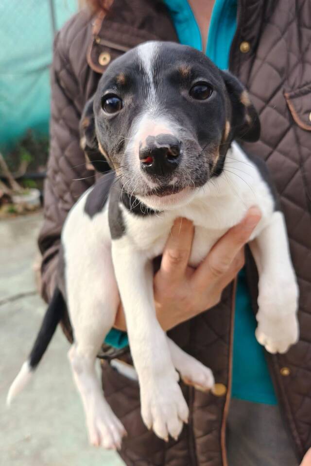 wir sind Melly, Ronja, Alva, Kailua, Hardy und Blacky – sechs kleine Hundekinder, etwa drei Monate jung und voller Tatendrang. Unser Start ins Leben war wirklich nicht schön: Maria und ihr Freund fanden uns allein nahe einer Straße zwischen Olivenbäumen. Ohne Mama, ohne Schutz. Zum Glück durften wir gleich in eine Pflegestelle ziehen und sind nun in Sicherheit.