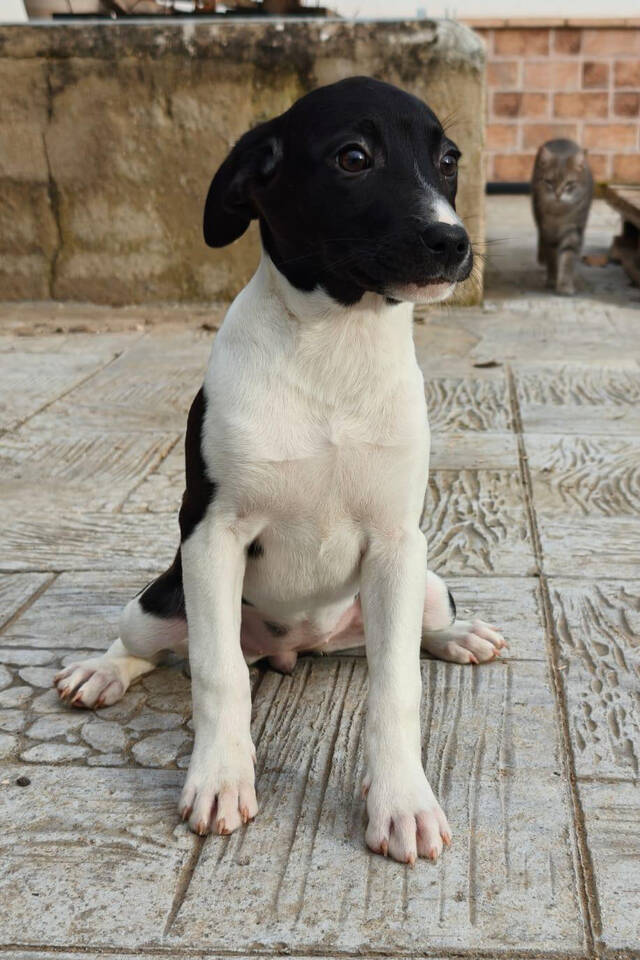 wir sind Melly, Ronja, Alva, Kailua, Hardy und Blacky – sechs kleine Hundekinder, etwa drei Monate jung und voller Tatendrang. Unser Start ins Leben war wirklich nicht schön: Maria und ihr Freund fanden uns allein nahe einer Straße zwischen Olivenbäumen. Ohne Mama, ohne Schutz. Zum Glück durften wir gleich in eine Pflegestelle ziehen und sind nun in Sicherheit.