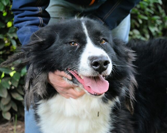 Ich bin Frasio! Border Collie im Maremmano-Körper! Lebhaft! Selbstsicher! Anhänglich! Sozial! Überschwänglich! Und ich bin allein!