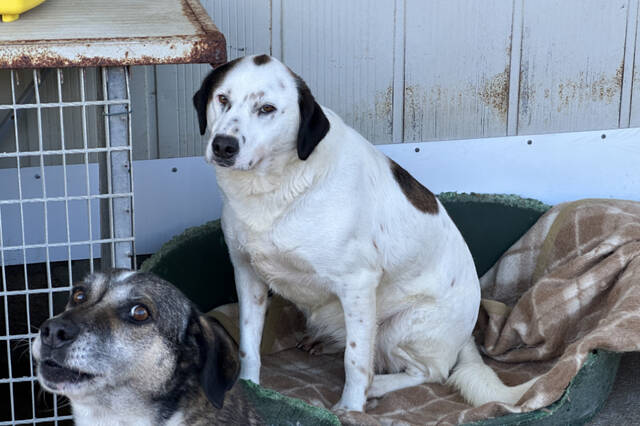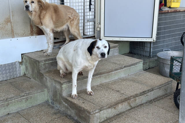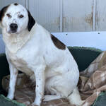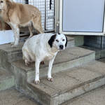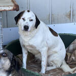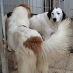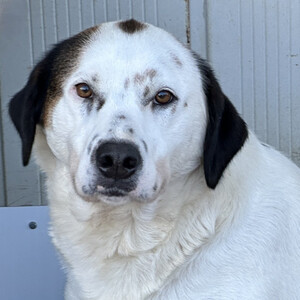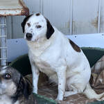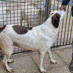 Peggy ist eine stattliche, selbstbewusste Hündin mit etwa 60 cm Schulterhöhe. Ihr weißes Fell mit braunen Abzeichen erinnert stark an ihre Schwester Pixar. Aktuell ist Peggy deutlich übergewichtig – ein bekanntes Problem in der L.I.D.A., wo bewusst reichlich gefüttert wird, um Futterneid und Konflikte in großen Gruppen zu vermeiden. Verständlich, aber auf Dauer nicht gesund.
