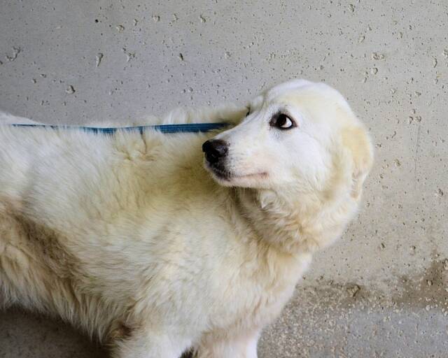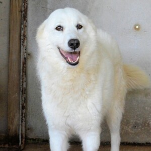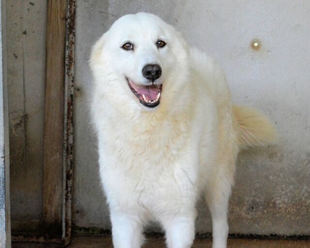 Da ist diese bildhübsche Hündin: ein Traum in Weiß, mit tiefen braunen Augen und lackschwarzer Stupsnase. Ein Maremmano (Mix) wie aus dem Bilderbuch.