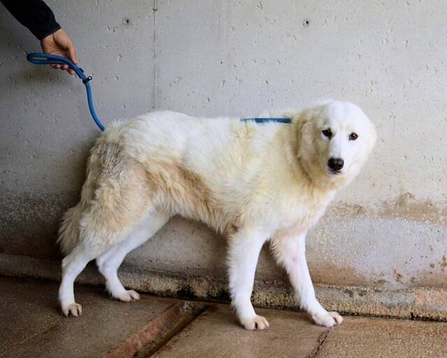 Amaya ist eine dieser Hündinnen, die man anschaut und automatisch in ein anderes Bild setzt: raus aus dem Beton, rein in ein normales Leben. Weißes Fell, braune Augen, schwarze Stupsnase – ein Maremmano-Mix wie aus dem Bilderbuch. Und doch sitzt sie weiter im Lager, in einem Alltag, der aus Gitter, Lärm und Vernachlässigung besteht. Nicht, weil sie dort hingehört, sondern weil es in solchen Lagern nicht darum geht, dass Hunde „drankommen“. Es geht darum, dass sie verwahrt werden. Und während Menschen draußen entscheiden können, ob sie sich kümmern, kann Amaya nur warten.