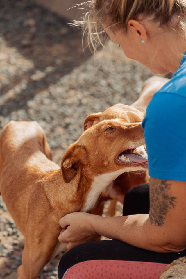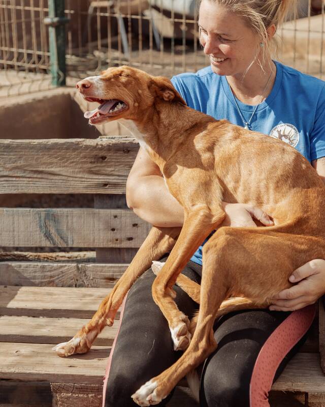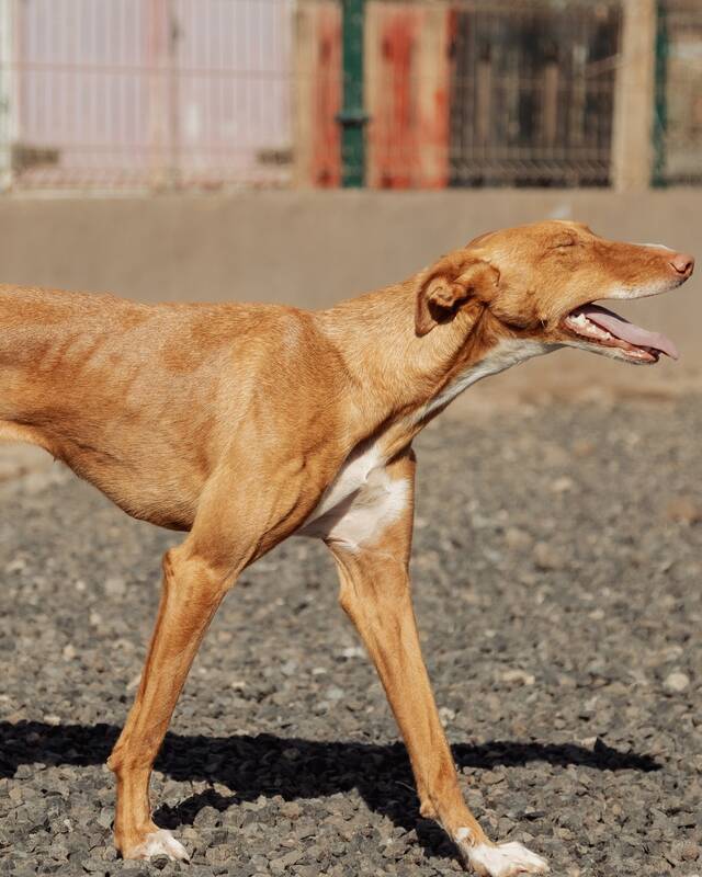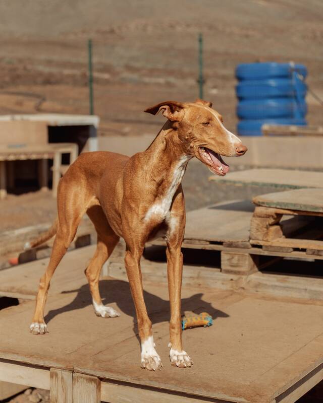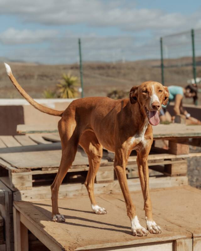 Zoe, ein liebevolles Podenco-Mädchen, verbrachte lange Zeit gemeinsam mit ihrer Freundin Chloe in der Perrera von La Pared. Schon beim ersten Anblick war klar: Diese beiden armen Seelen müssen dort raus - ihr sanftes, ausgeglichenes Wesen hat sofort alle Herzen erobert. Leider war auf der Finca zunächst kein Platz, sodass sie noch eine Weile warten mussten. Dann endlich war es soweit und die beiden wundervollen Hündinnen durften auf die Finca Zoe ziehen.
