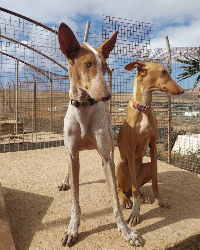 Auch Podenca Tara gehörte zu den glücklich Geretteten. Die optisch auffällige Hündin saß in der Perrera gemeinsam mit Podenca Tinkerbell in einem Zwinger. Auch auf der Tierschutzfinca teilen sich die beiden weiterhin ein Gehege mit einem Rüden und verstehen sich ausgesprochen gut.