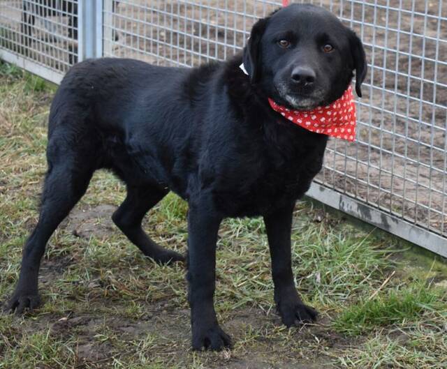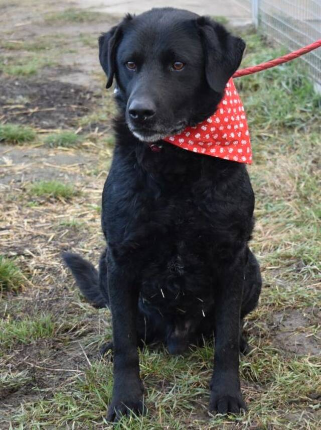 Beschreibung: An einem Novembertag, an dem es durchgehend regnete, bekamen unsere ungarischen Tierschützer einen Anruf, dass außerhalb von Orosháza ein Hund gefunden wurde, der einem schwarzen Labrador ähnelt. Sie fuhren raus zum angegebenen Ort, sahen aber keinen Hund. Dieser saß nämlich bei den Menschen, die um Hilfe baten im Auto, mit trockenem Fell und fröhlich aus dem Fenster schauend. Sie wussten sofort, dass sie angeschwindelt wurden, da dies nicht der erste Fall dieser Art war. Die Menschen hatten sich diese Geschichte ausgedacht, um sich ihres lästig gewordenen Hundes zu entledigen. Unsere Tierschützer fragten sie wie es sein kann, dass trotz des Platzregens noch nicht einmal die Beine des Hundes nass waren. Sie regten sich auf und verbaten sich die Verdächtigung, dass es ihr Hund sein könnte.