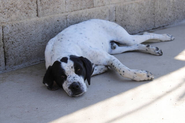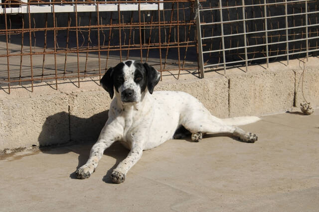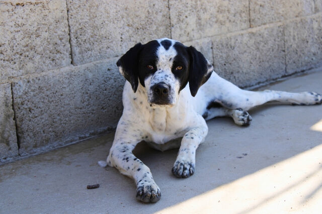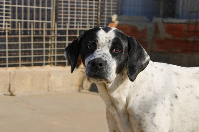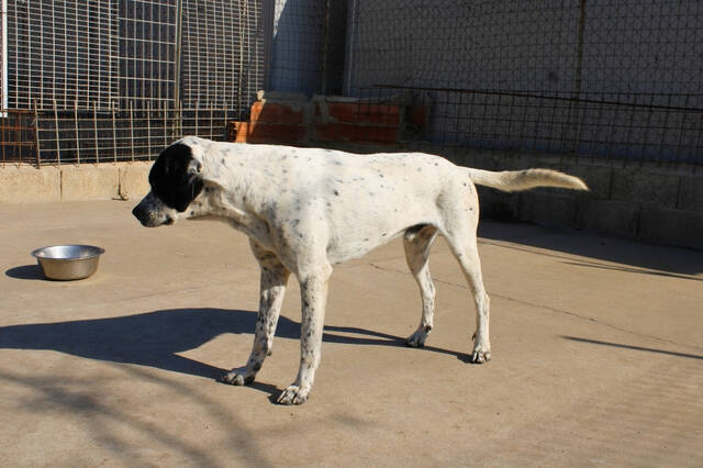 Constantino ist ein ganz leiser Hund. Ein sensibler, vorsichtiger Pointer-Mischlingsrüde mit wunderschönem schimmelfarbenem Fell und einem schwarzen Fleck über beiden Augen, der seinem Gesicht einen besonders sanften, fast fragenden Ausdruck verleiht.
