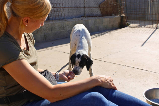 Immer wieder wagte er sich näher heran, angezogen von der Ruhe und Freude der anderen Hunde. Mit etwas Futter nahm er schließlich all seinen Mut zusammen und nahm es ganz vorsichtig aus der Hand. In diesem Moment geschah etwas ganz Besonderes: Sein Blick wurde weich, ein kleines Lächeln huschte über sein Gesicht. Für einen Augenblick zeigte sich, was in ihm steckt – Vertrauen, Sehnsucht, Hoffnung.