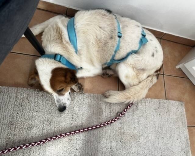 So geht es uns mit Elpidius und seiner Geschichte. Er war als winziger Welpe von etwa acht Wochen in ein italienisches Hundelager verfrachtet worden und hat dort sein gesamtes Leben verbracht bis endlich im Mai25 die (vermeintliche) Erlösung kam. Jemand hatte den armen Schlumpf auf unserer Homepage gefunden und wollte ihm ein gutes Zuhause geben … so dachten wir. Doch dann kam alles anders. Elpidius verhielt sich wohl nicht erwartungsgemäß. Er war in eine Welt geworfen worden, in der alles anders war, als er es je gesehen hatte: das Haus, die Umgebung, die Menschen – eben einfach ALLES. Aber wir hatten ihn ja Menschen mit ewig langer Hundeerfahrunganvertraut, die versprochen hatten, falls angebracht, auch eine Hundeschule zu Rate zu ziehen usw., usw. … Nichts von alledem ist heute noch wahr.